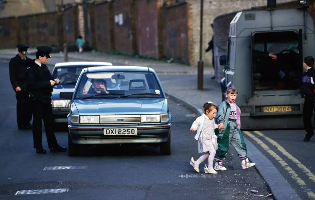 By the time I was born in 1984, the bombing, balaclava-wearing, and road barricading otherwise known as the “Northern Irish Troubles” was fully underway. Like most children born and raised during a civil conflict, other realities outside of my own didn’t exist. For instance, it was completely normal to see soldiers with huge assault rifles rummaging through my mum’s handbag, checking for explosives every time we went shopping, or to see burnt-out cars and buses on our jaunts into Belfast or to overhear conversations about car bombs and ceasefires.